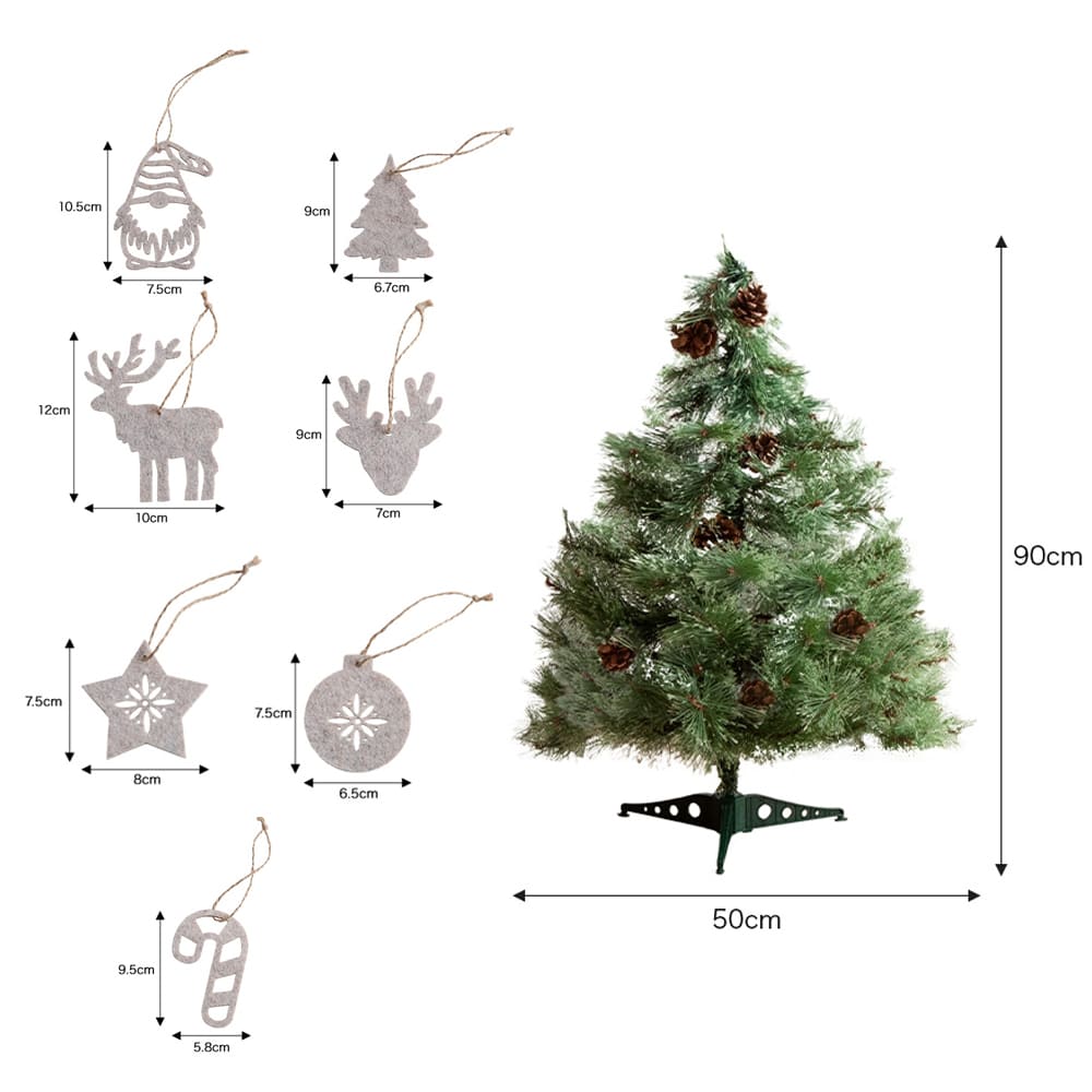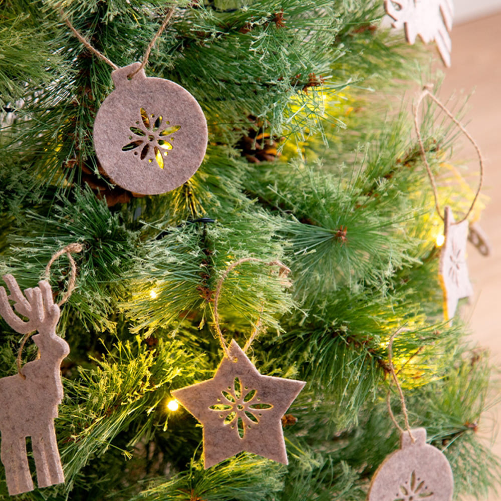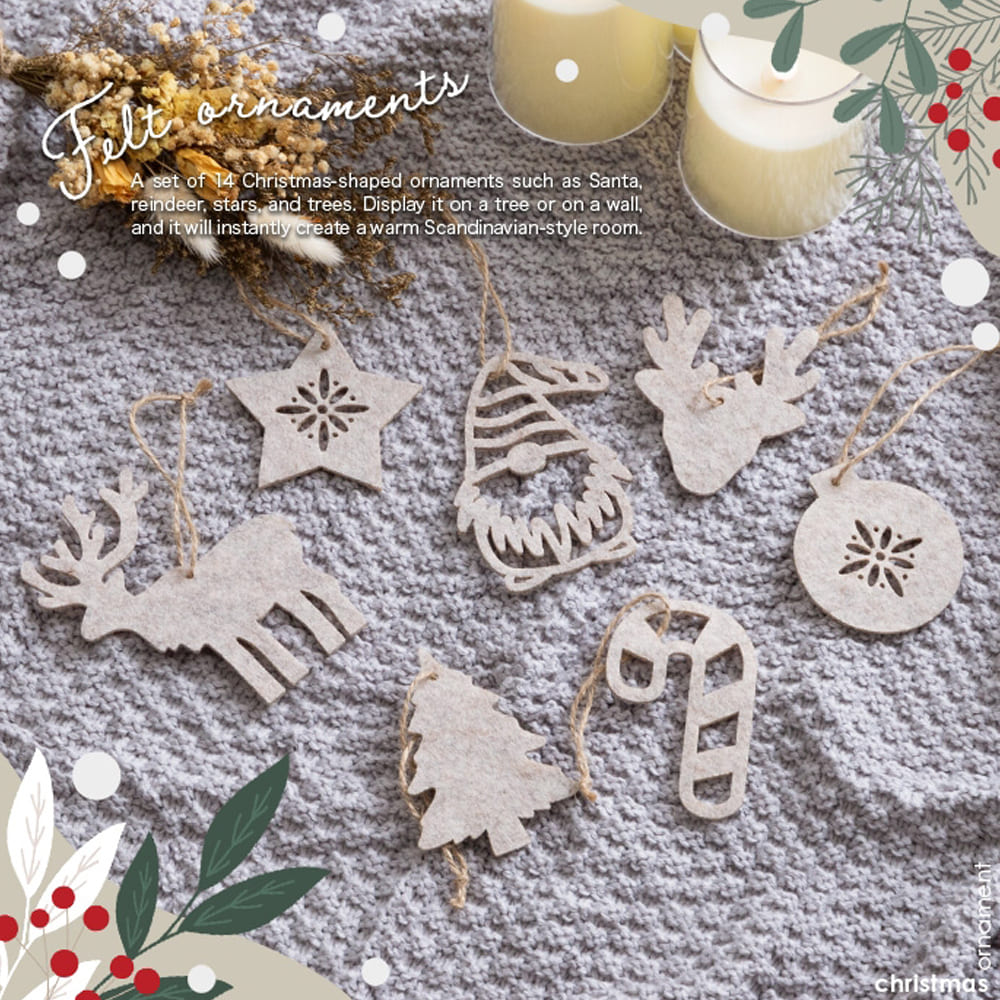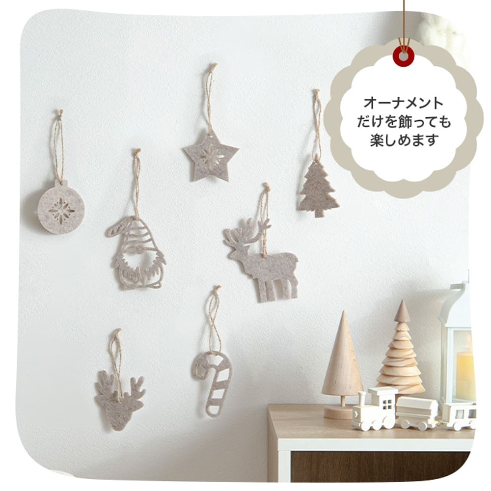 さらにオーナメントセットなら、北欧風で可愛らしいデザインのフェルト製オーナメントが7種類14個付属。