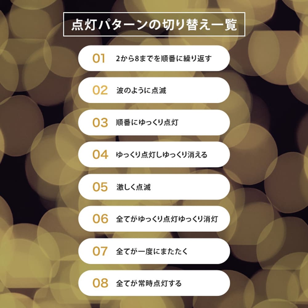 シーンによって楽しめる8つの点灯パターン