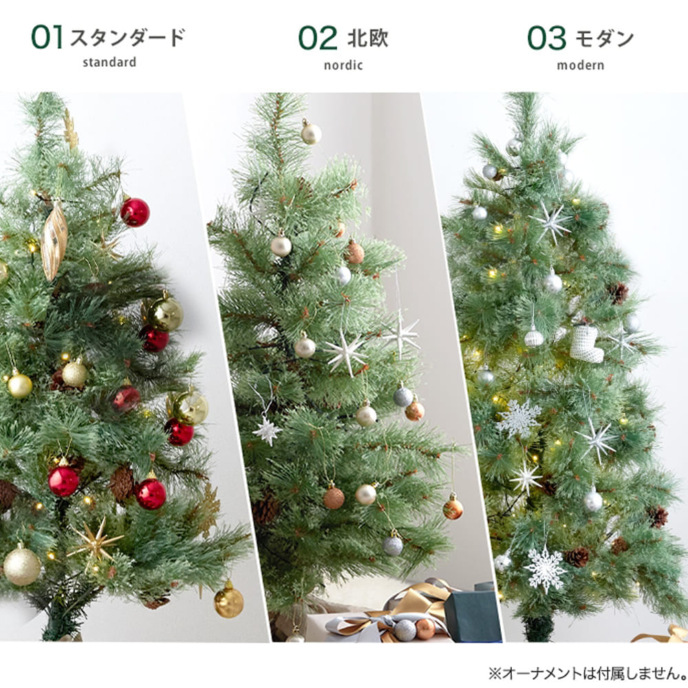 リアルな質感へのこだわりと、お好みのオーナメントを飾れる自由度の高さが魅力のツリーです。