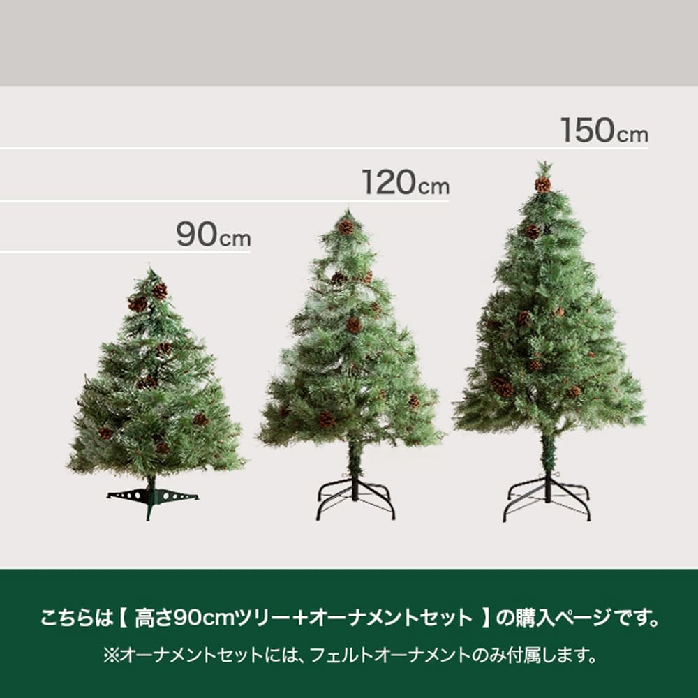 こちらでは 高さ90cm/オーナメント付き をご購入いただけます。