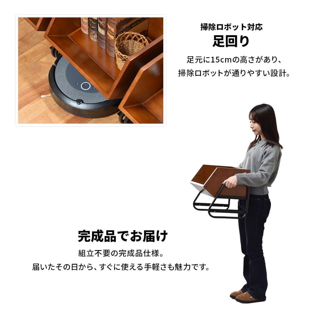 複数台を重ねて使えるスタッキング仕様で、収納量に合わせて自由にレイアウト可能。縦に重ねれば省スペースに、横に並べればローシェルフのような使い方もできます。ボックス下には約15cmの空間があり、スリッパ収納や掃除ロボットにも対応。デザイン性と実用性を兼ね備えた、長く使える収納家具です。