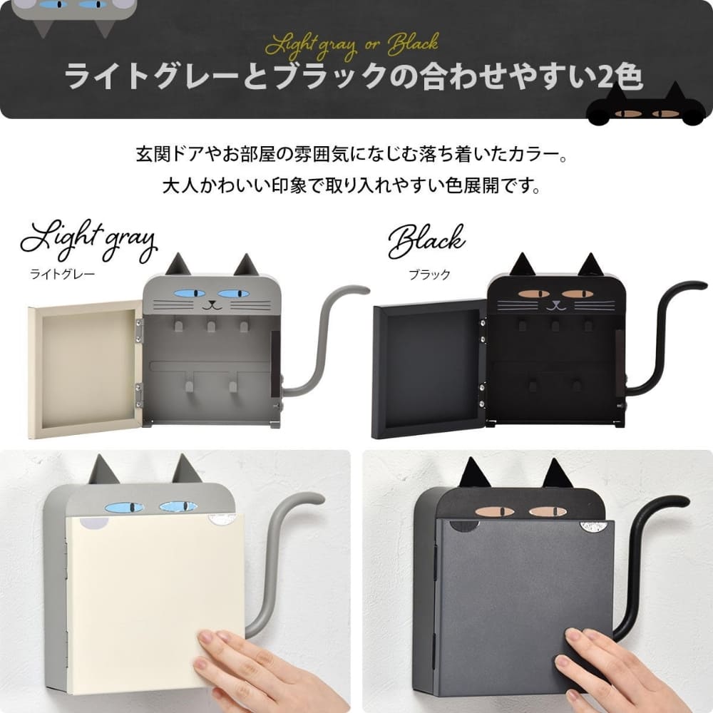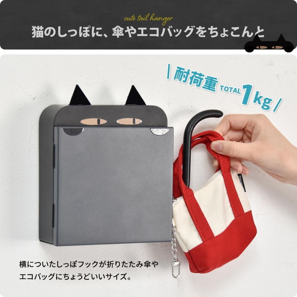 しっぽフックで傘も掛けられる便利でキュートな猫型キーボックス