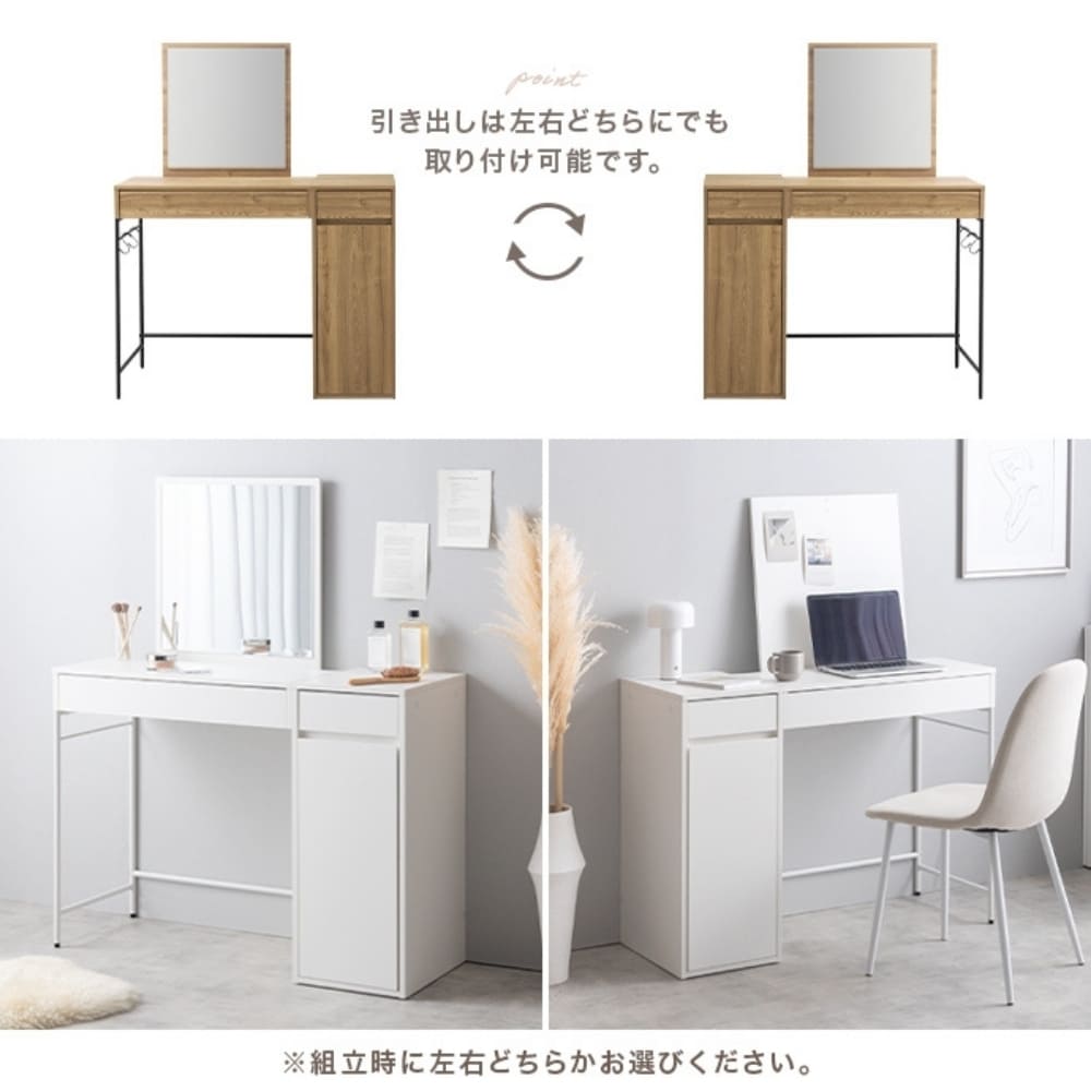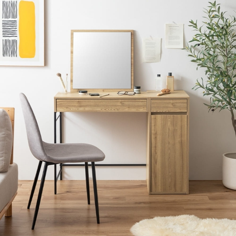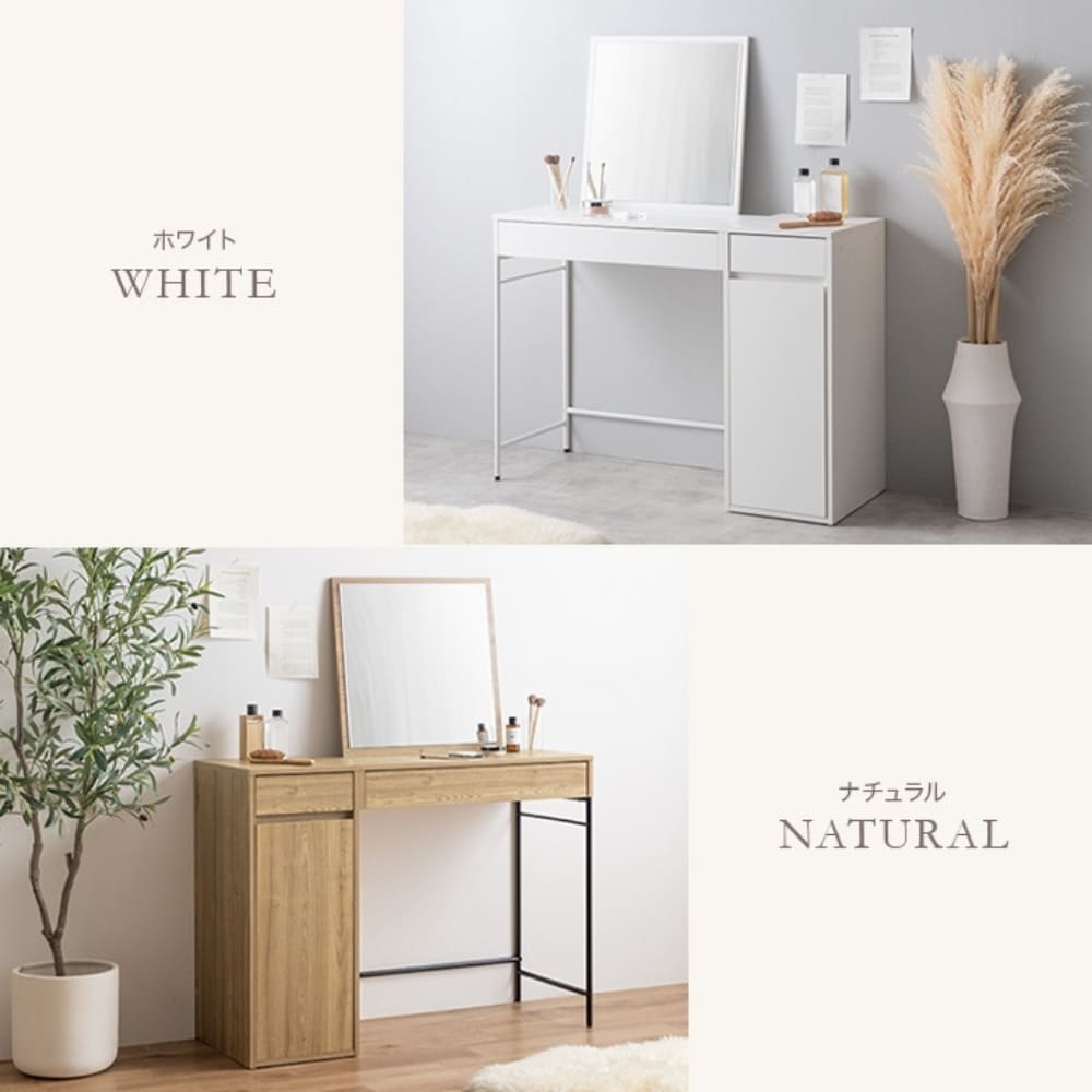幅100cmの広々とした天板は、コスメやミラー、雑貨を並べてもゆとりがあり、メイクはもちろんデスクワークや趣味の時間にも使いやすいサイズ感です。