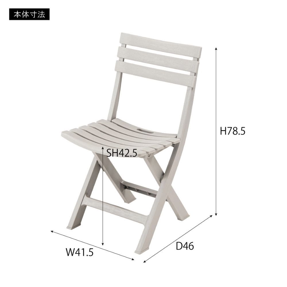 | サイズ(約) | サイズ : 幅 41.5cm x 奥行 46cm x 高さ 78.5cm x 座面高 42.5cm 重量 : 3kg 静的耐荷重 : 80kg |