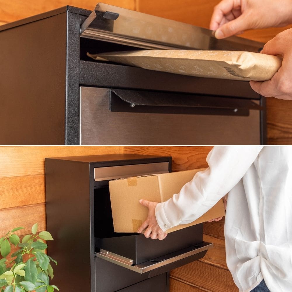 玄関にすっきり置けて、郵便も宅配便もまとめて受け取れるスタイリッシュなデリバリーボックス。