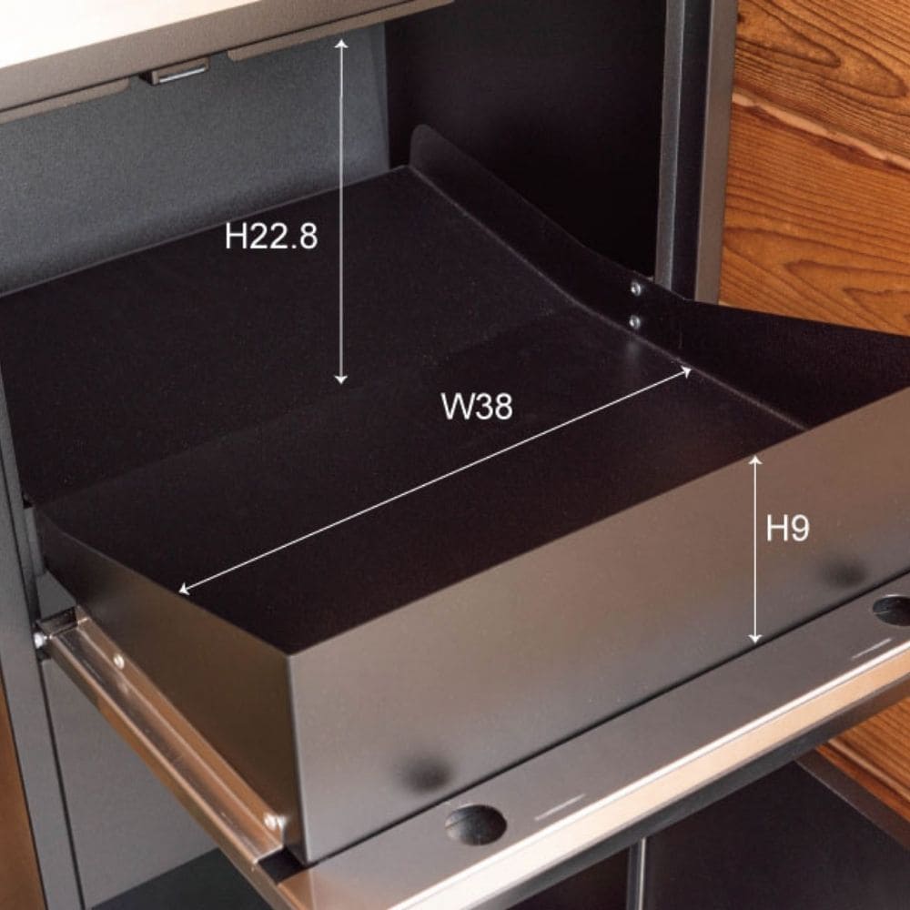 上部のポストは厚さ3cmまで投函でき、手紙や小型の荷物の受け取りに便利。