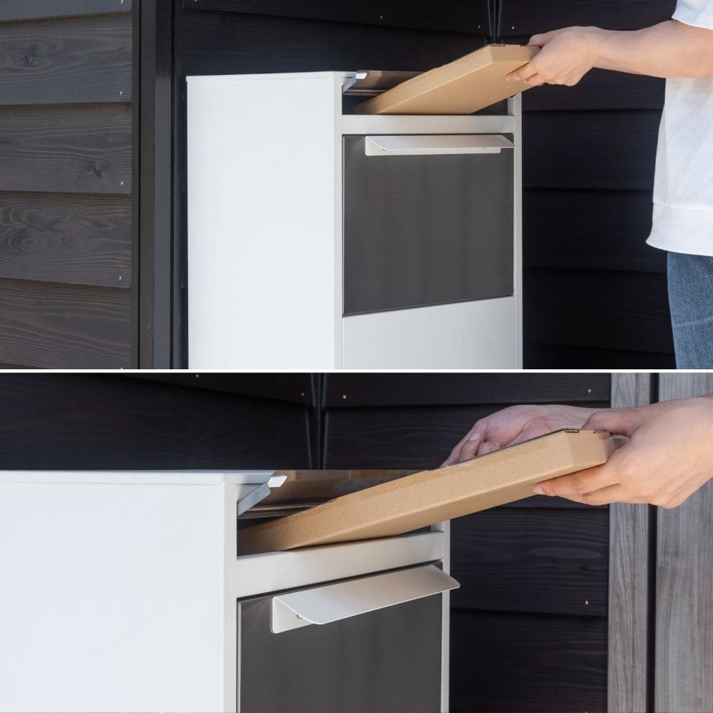 玄関にすっきり置けて、郵便も宅配便もまとめて受け取れるスタイリッシュなデリバリーボックス。