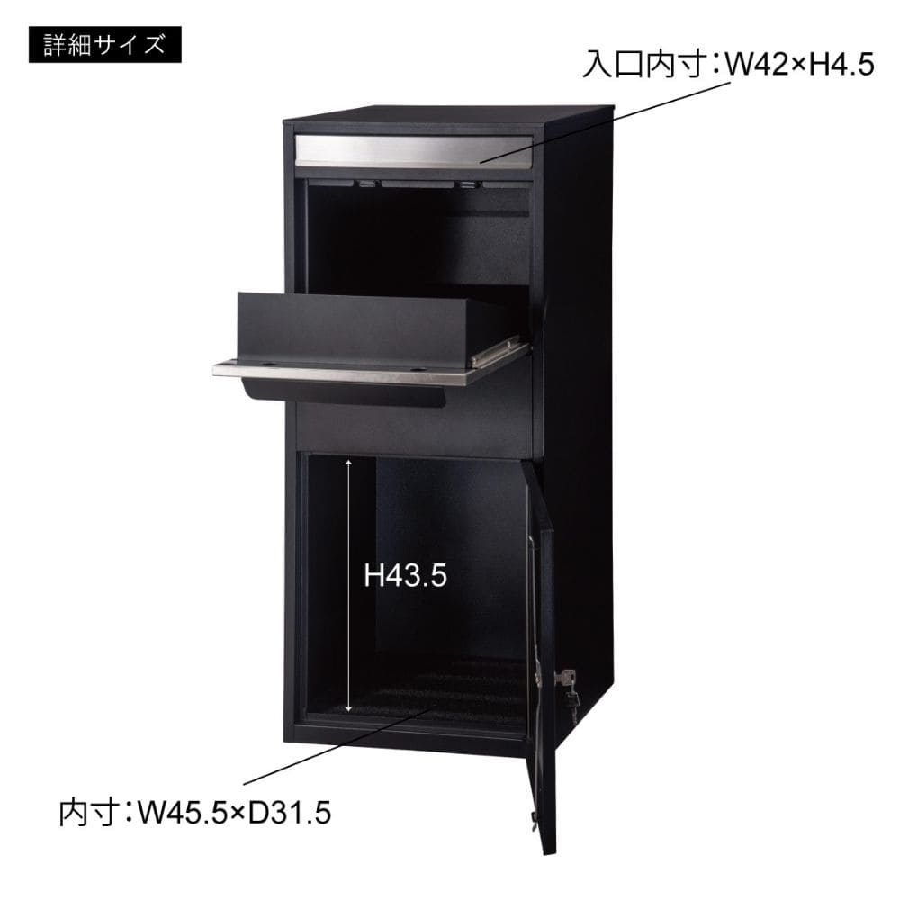 上部のポストは厚さ3cmまで投函でき、手紙や小型の荷物の受け取りに便利。
