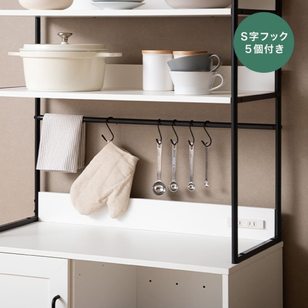 付属のS字フックを使えば、キッチンツールやミトンなどを掛けて収納可能。