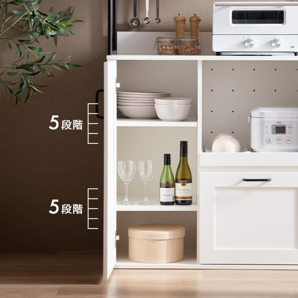 6種類の収納を備え、キッチンアイテムをまとめて収納できるため、毎日の家事を快適に。