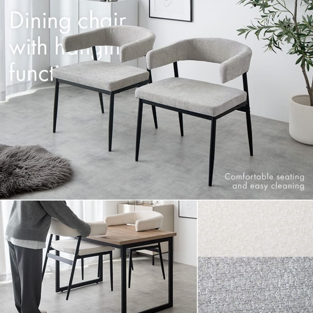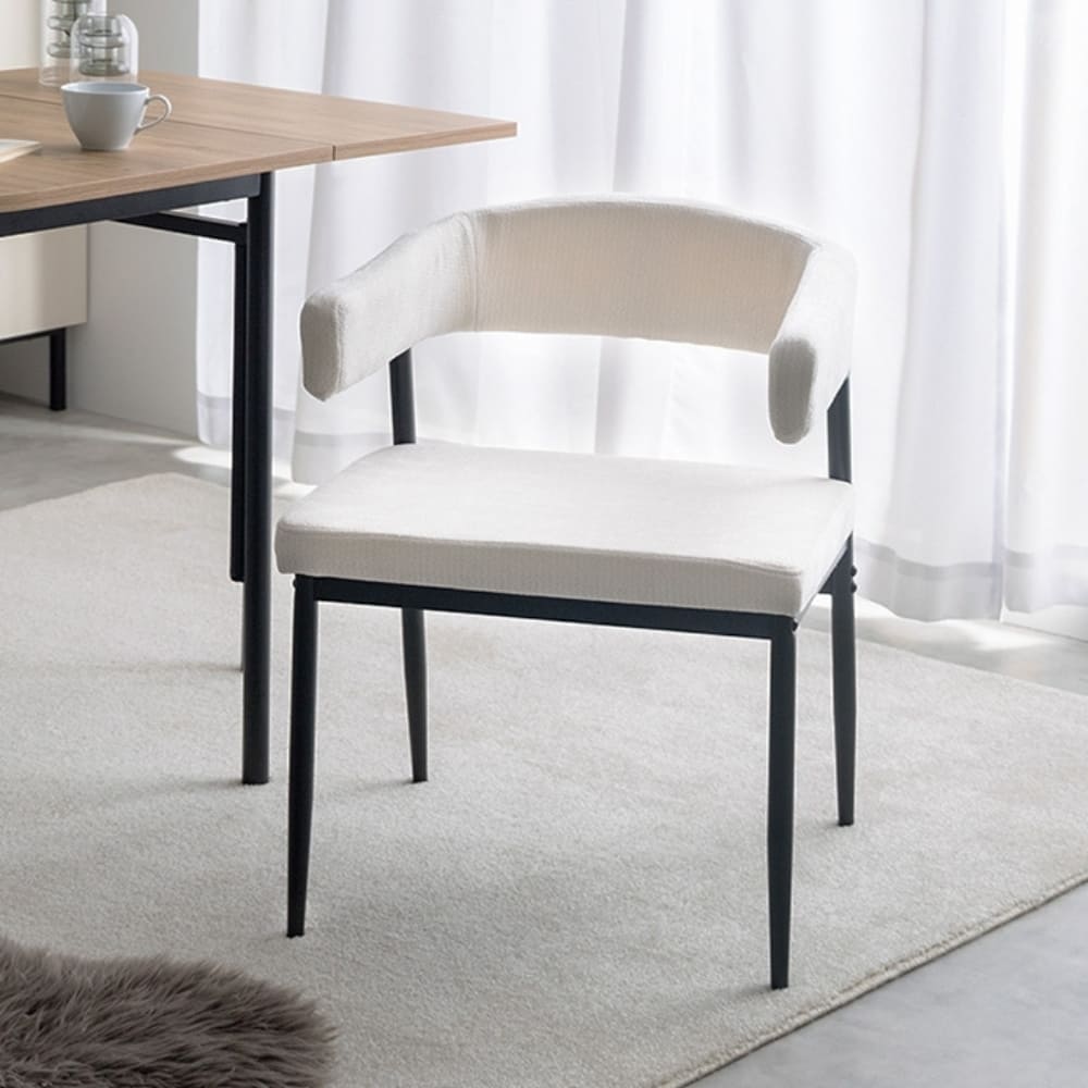やわらかなファブリックの風合いに、シャープなブラックスチール脚を合わせたデザインは、空間にすっとなじみながら洗練された印象を演出します。