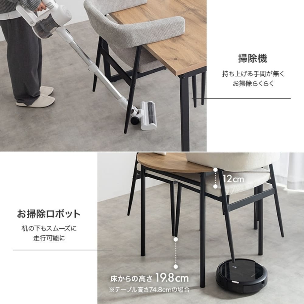 脚を持ち上げずに掃除ができるため、ロボット掃除機もスムーズに走行可能です。