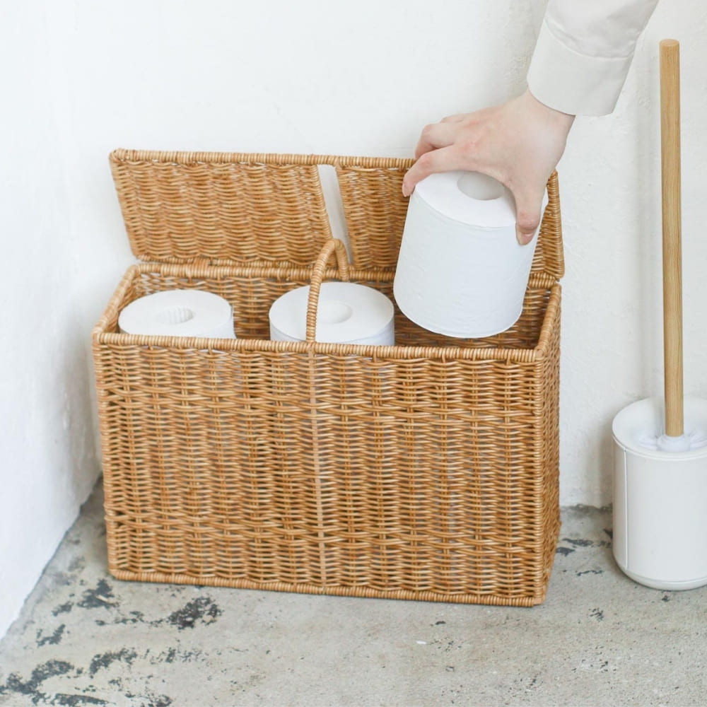 ナチュラルなかご編み風デザインで、水まわりをやさしく整える『UTILE(ユティル) ユティル ナイール ハンドル付ペーパーボックス』。