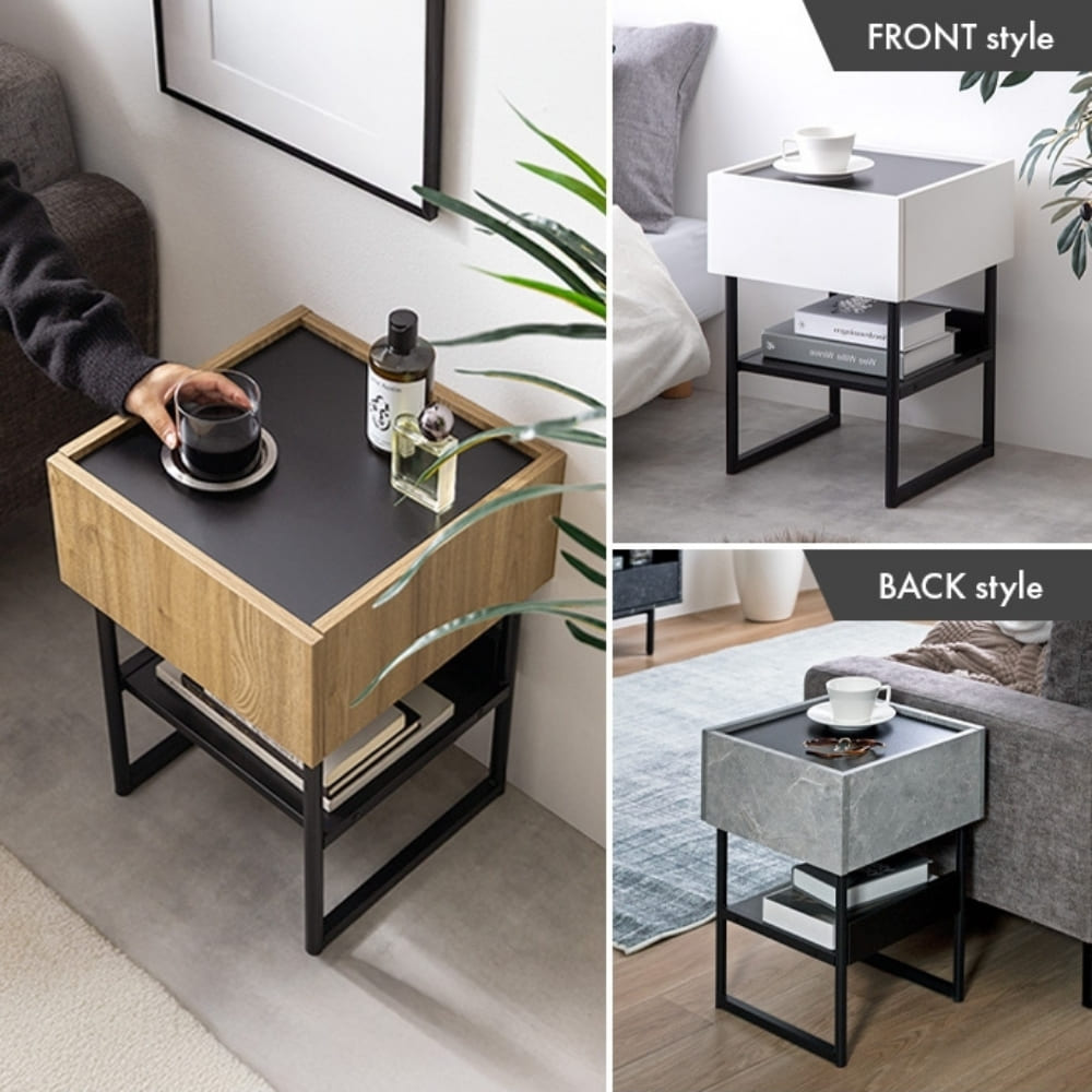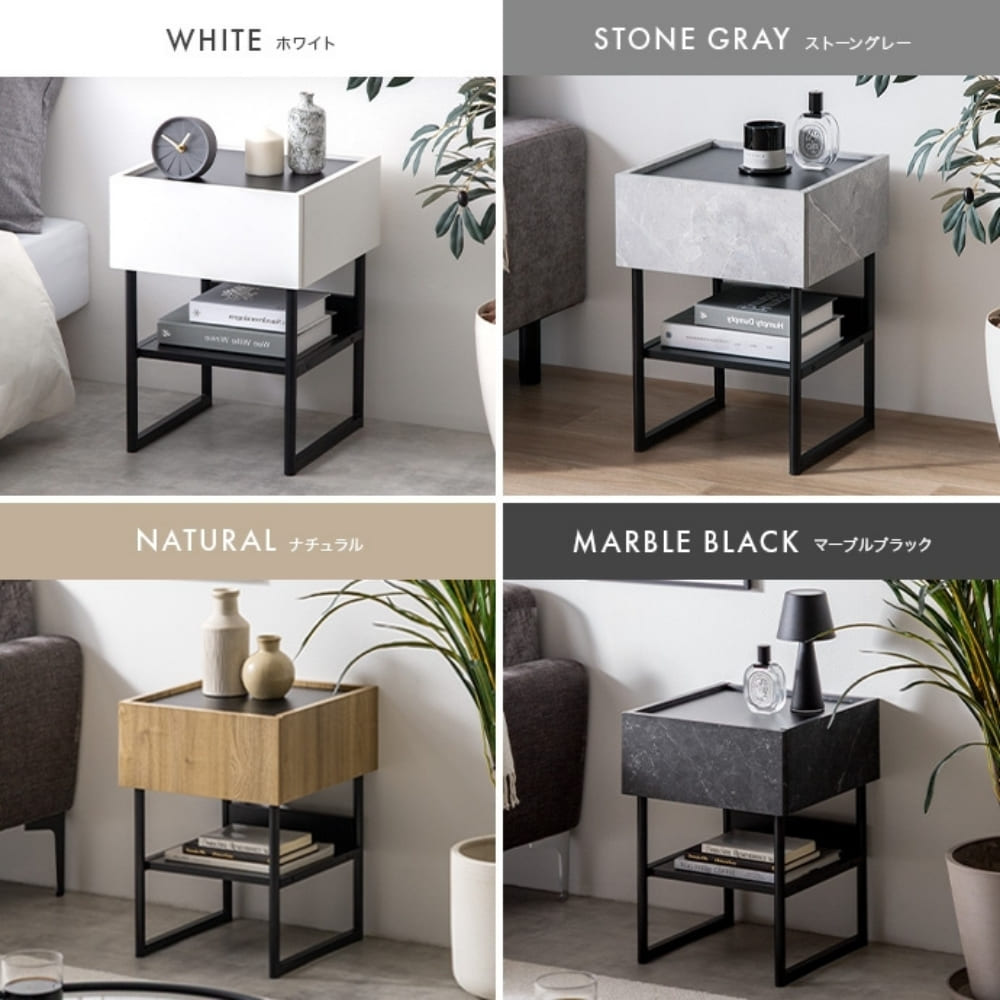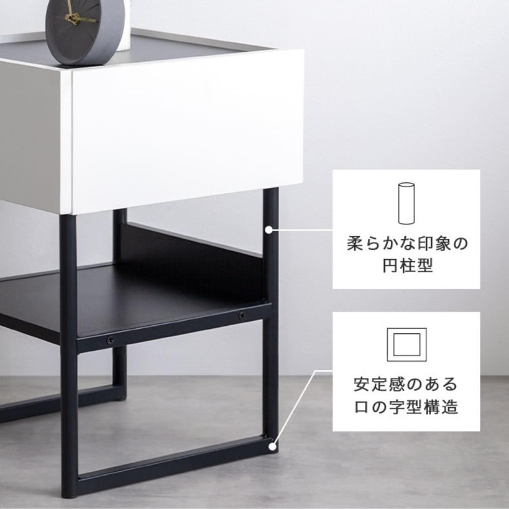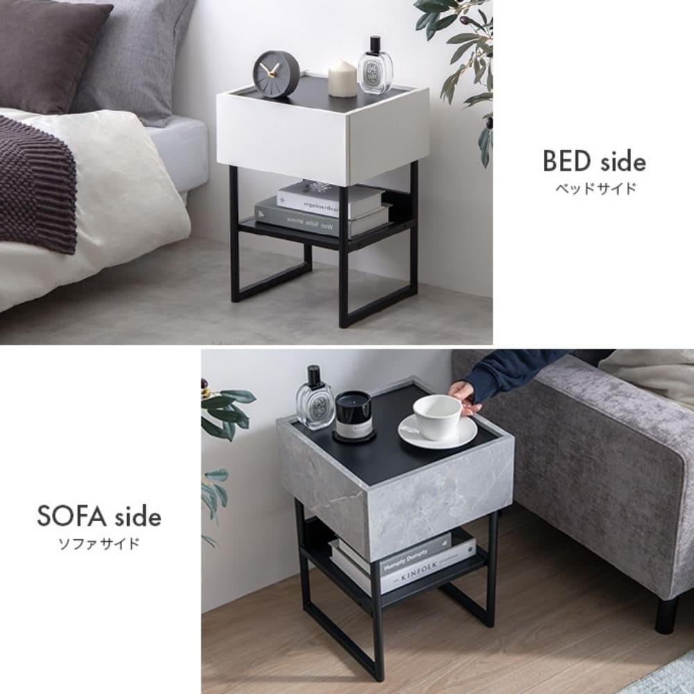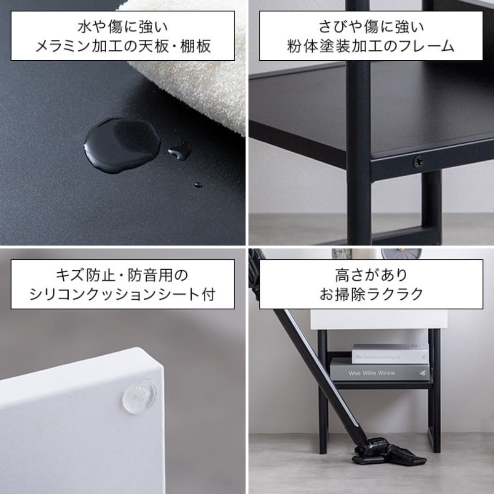 ソファ横では飲み物やスマホを置くサイドテーブルに、ベッド横ではスタンドライトや時計を置く宮棚の代わりとして、様々なシーンでご活用いただけます。