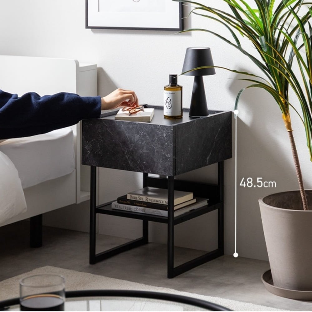 高さ48.5cmでソファにもベッドにも合わせやすく、ワンルームや寝室でも圧迫感なく取り入れられます。