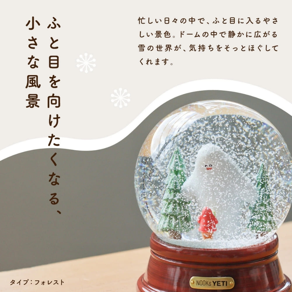 見つめるたび、やさしい物語がふわりと広がる『NOOKs(ヌークス) イエティ スノードーム 』。