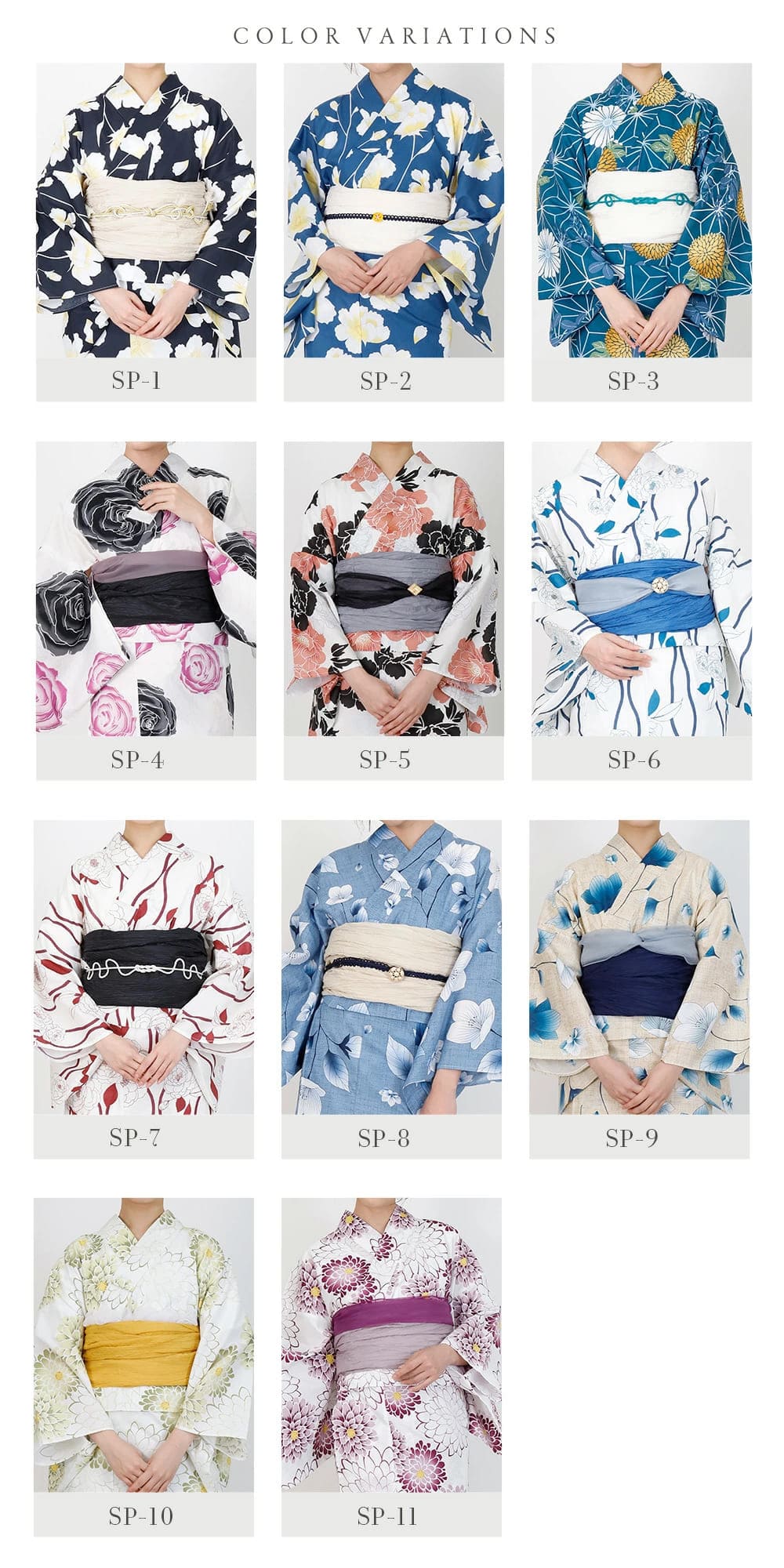 届いてすぐコーディネートが完成します!柄は全11タイプから選べて、花火大会や夏祭り、カフェデートや旅行にもぴったり。