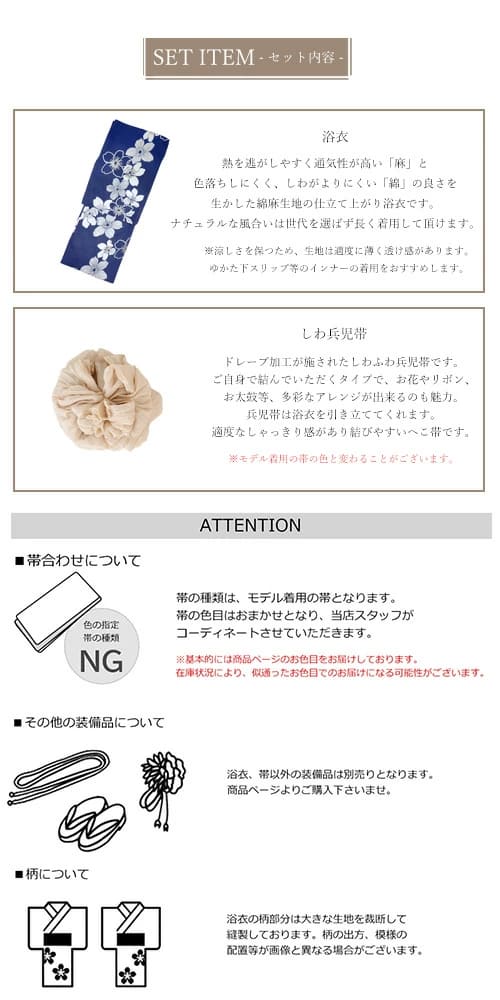 ※帯はモデル着用の帯を基本的には浴衣に合わせてコーディネイト致します。