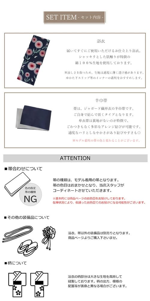 ※帯はモデル着用の帯を基本的には浴衣に合わせてコーディネイト致します。