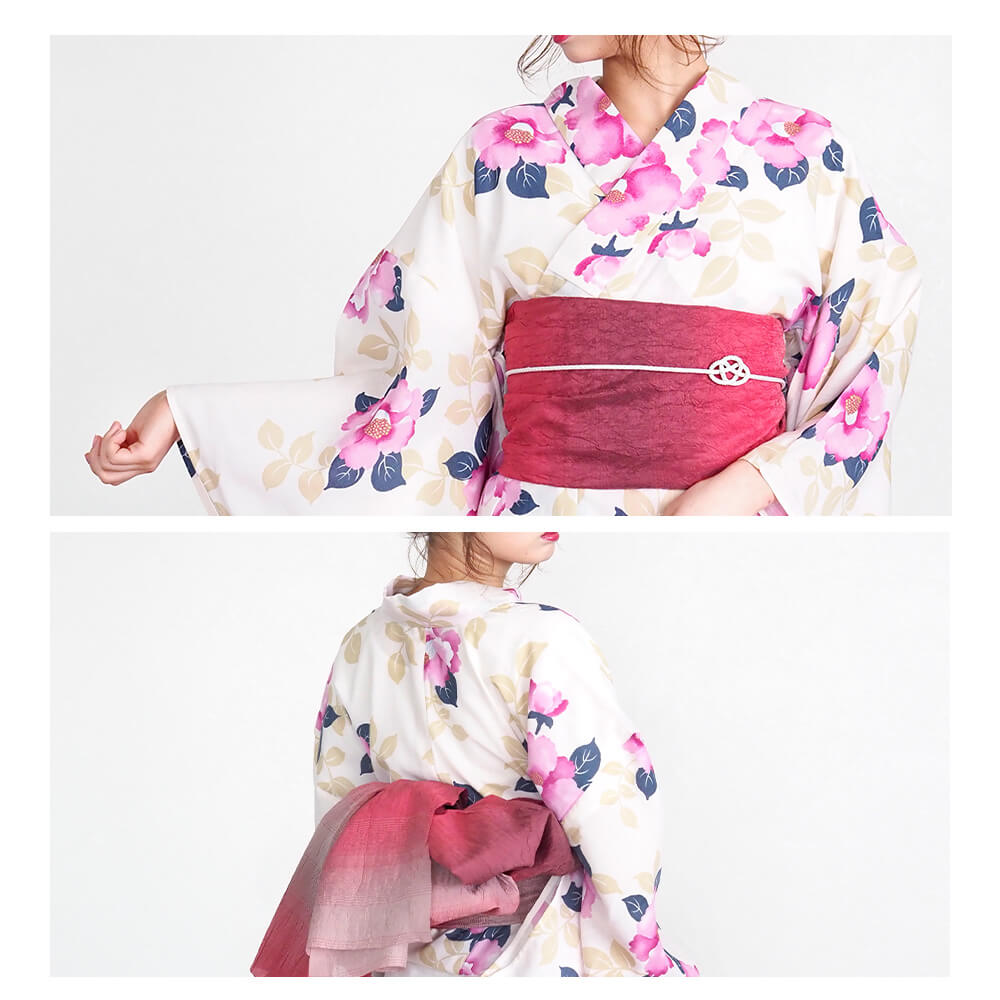 帯や下駄、バッグなどは付属していないため、お好きな小物でコーディネートを楽しめます。