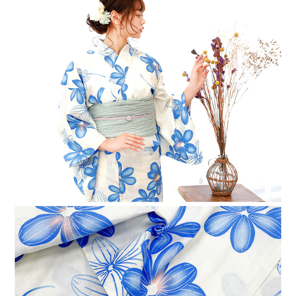 爽やかな青い花柄が夏の風に映える、綿100%の上質浴衣。