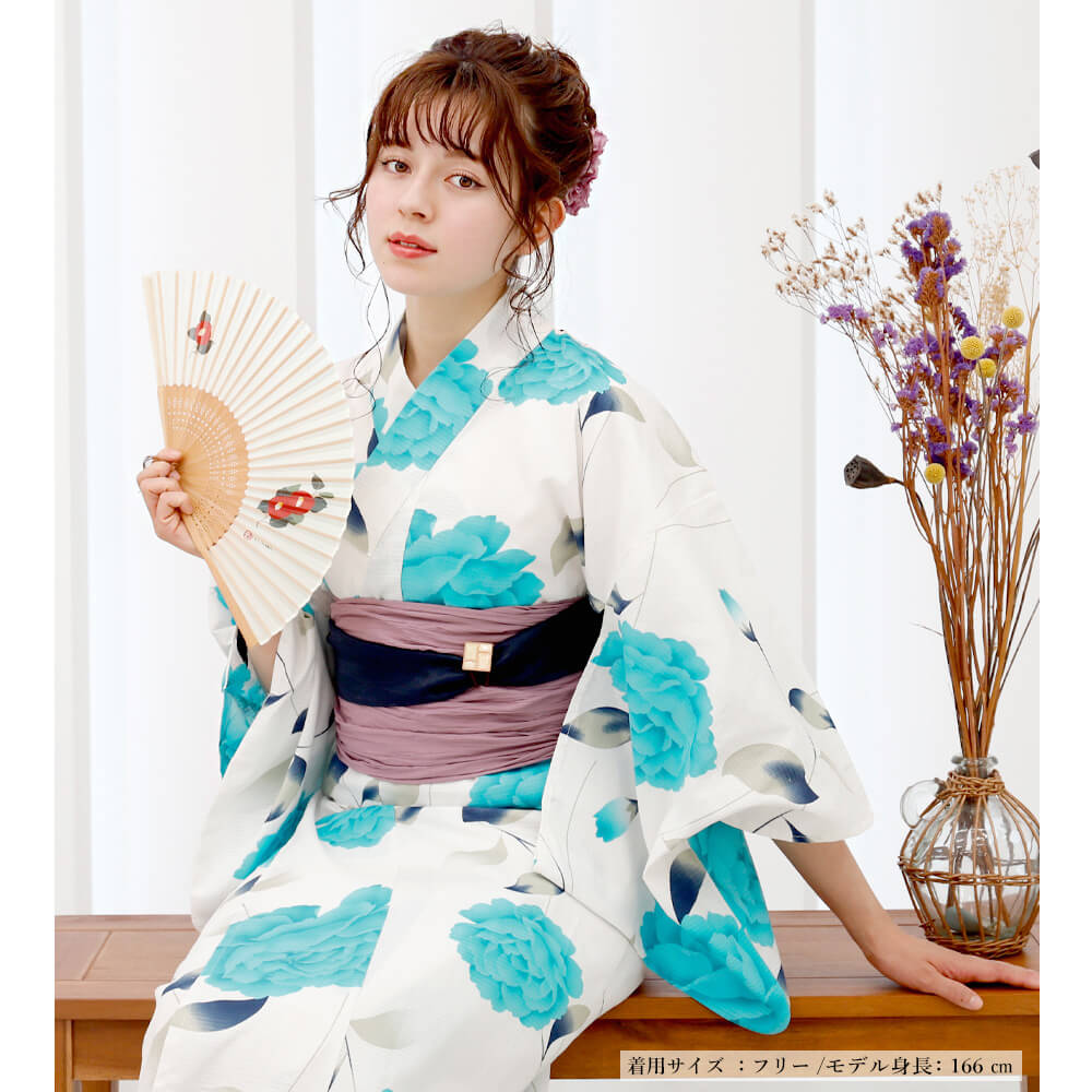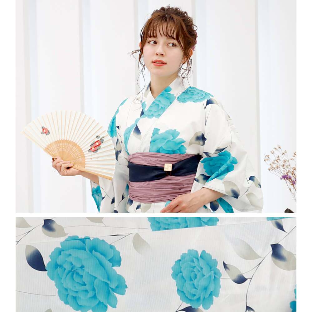 「碧玉牡丹」が美しく咲く、セパレート式の二部式浴衣。