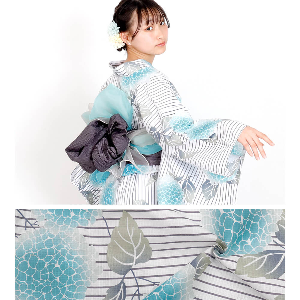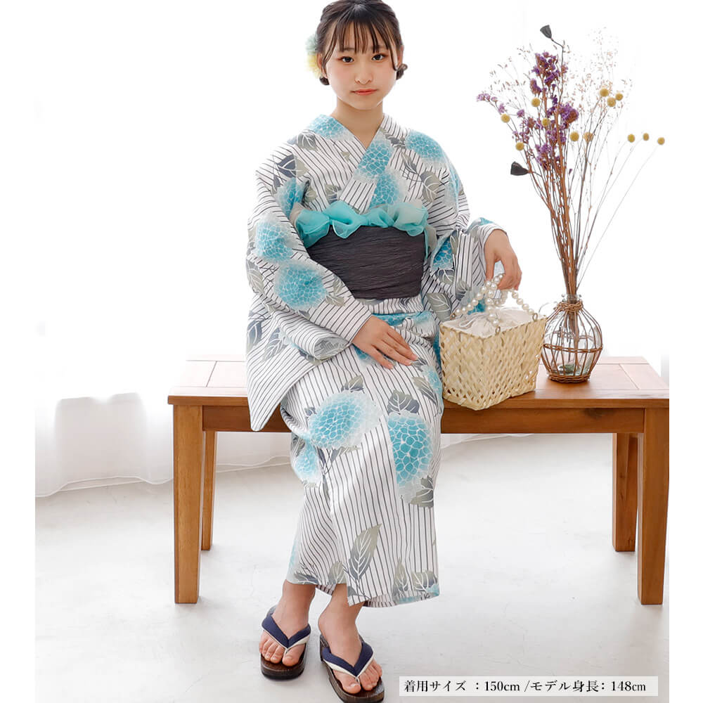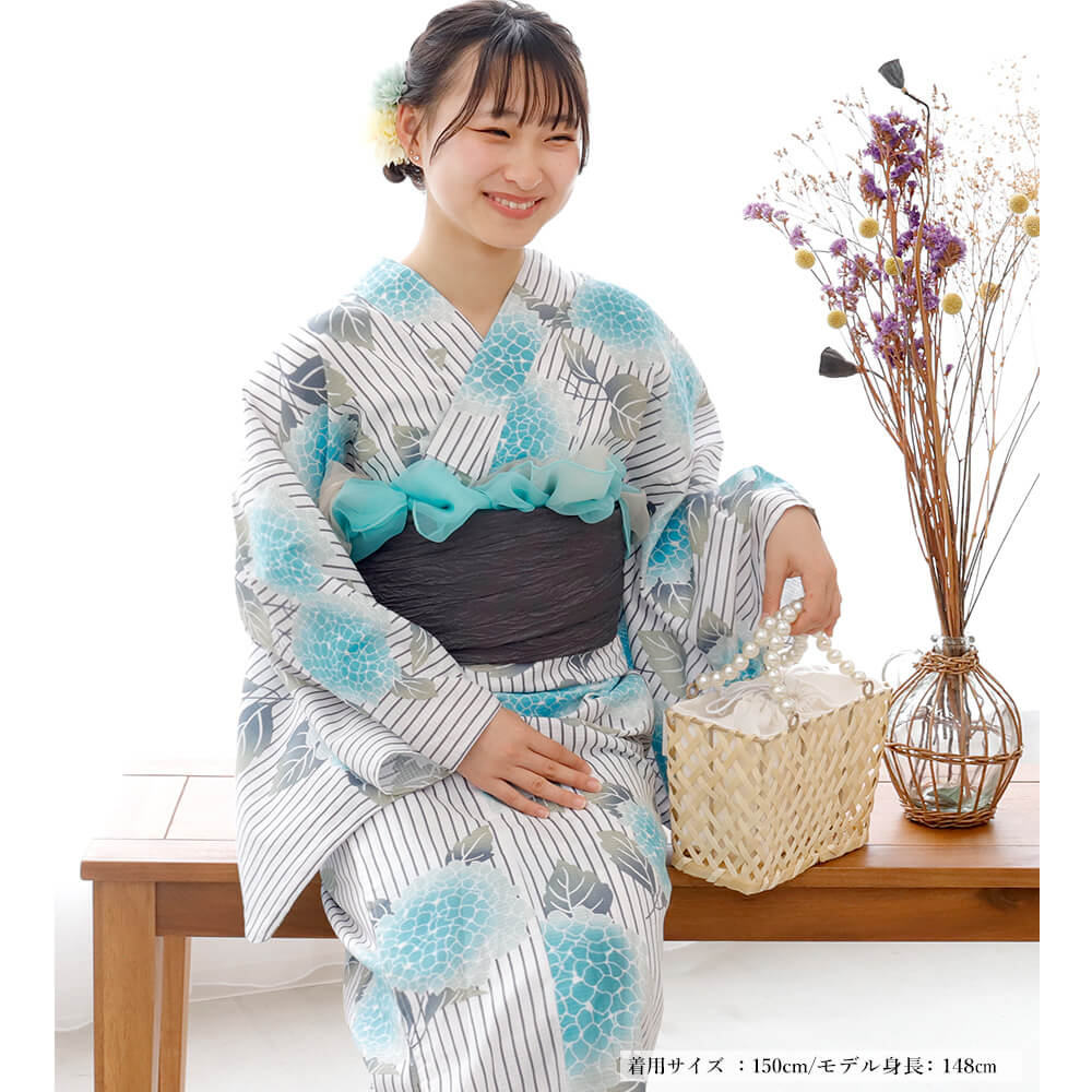 爽やかで涼しげ!ジュニアにもぴったりな「柳あじさいの咲く夏」浴衣。