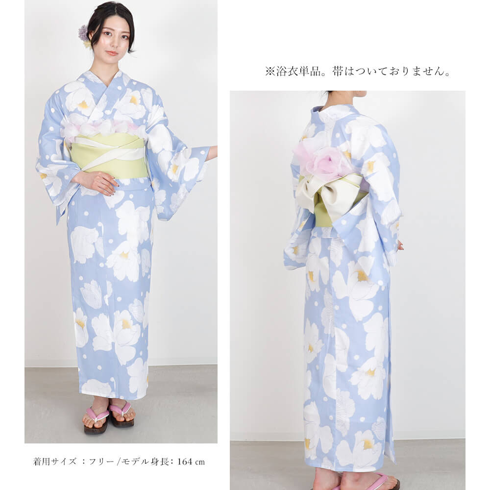 届いてすぐ着られる、お仕立て上がりの綿100%浴衣「カメリアスカイ」