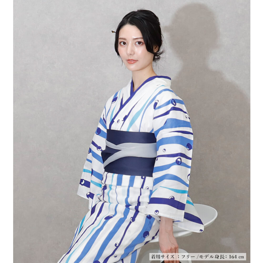 綿100%のシャリっと感が心地よく、夏祭りや花火大会、カフェ浴衣にもおすすめの一枚です。
