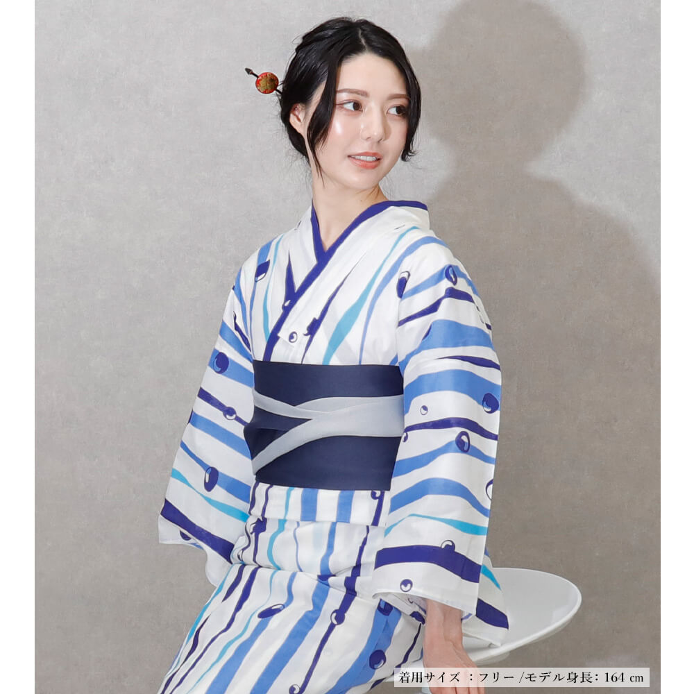 帯や下駄、髪飾りとのコーディネート次第で、上品にもカジュアルにも楽しめます。