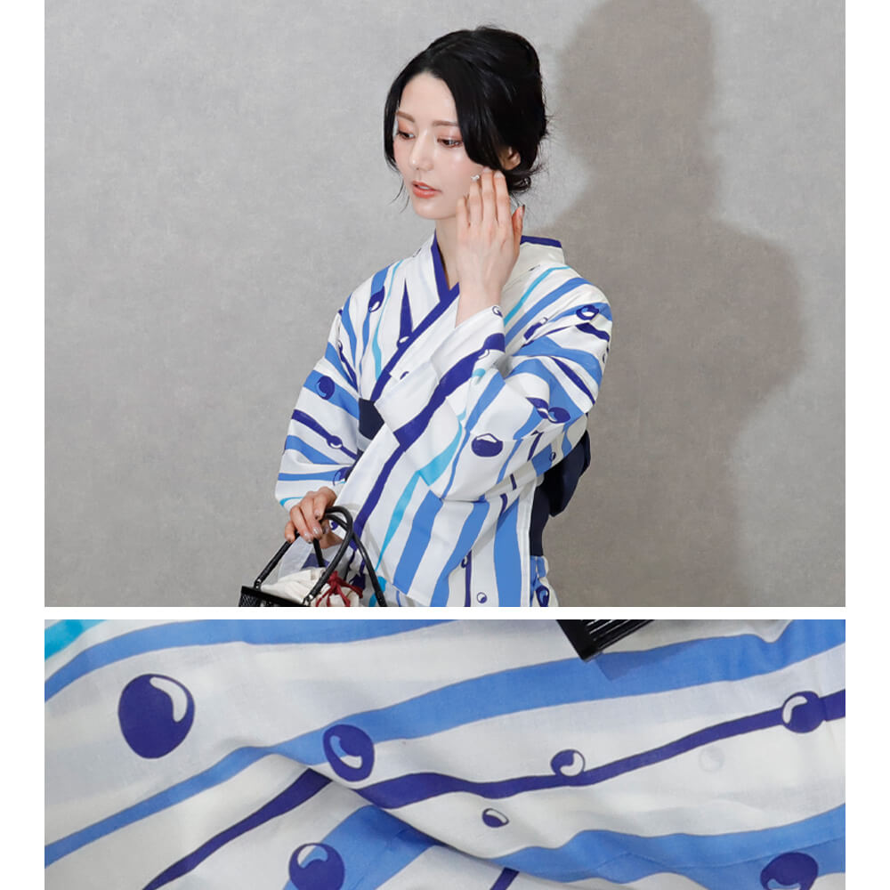 水玉のような文様が涼感を与える、おすすめの大人かわいいお仕立て上がり浴衣です。