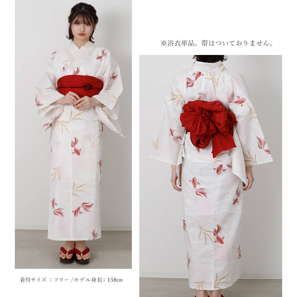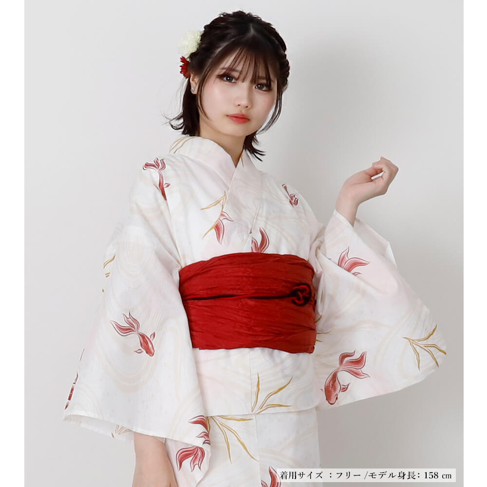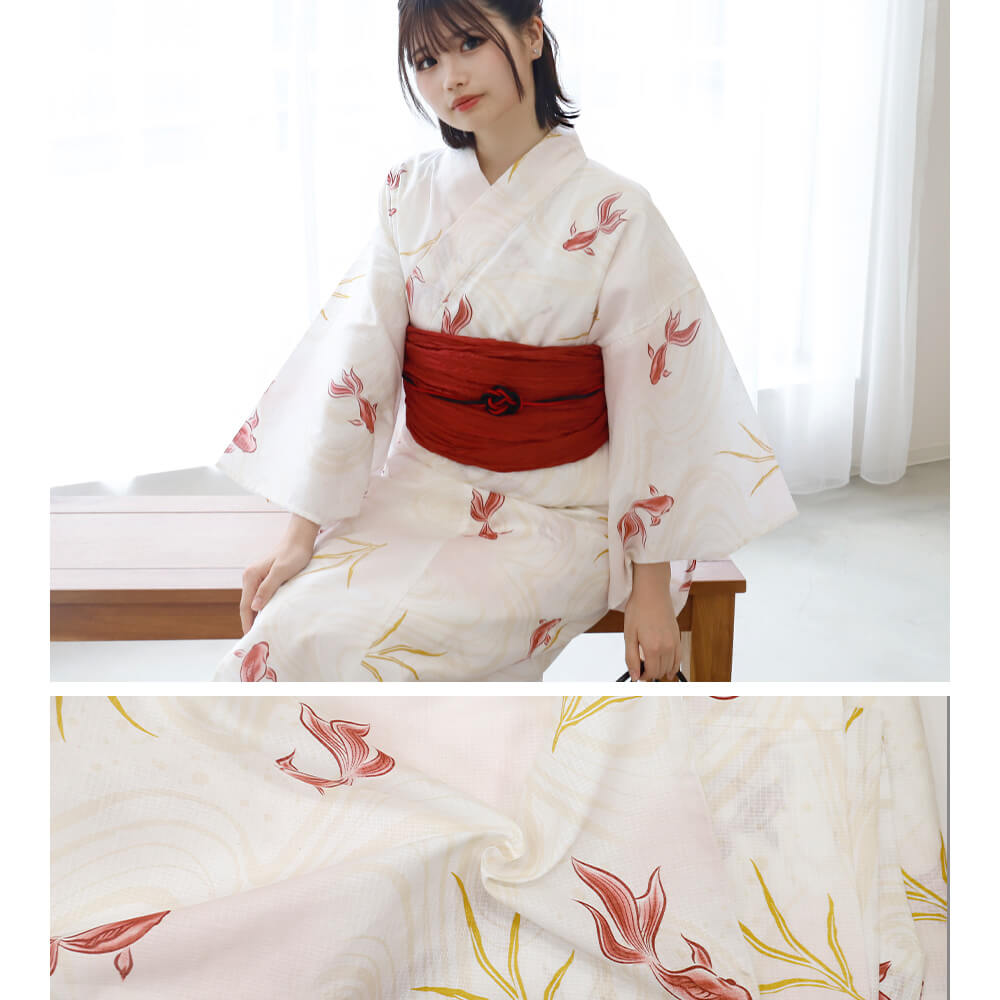 ふわりと揺れる金魚柄が涼しげで、夏祭りや花火大会にぴったりの二部式浴衣。