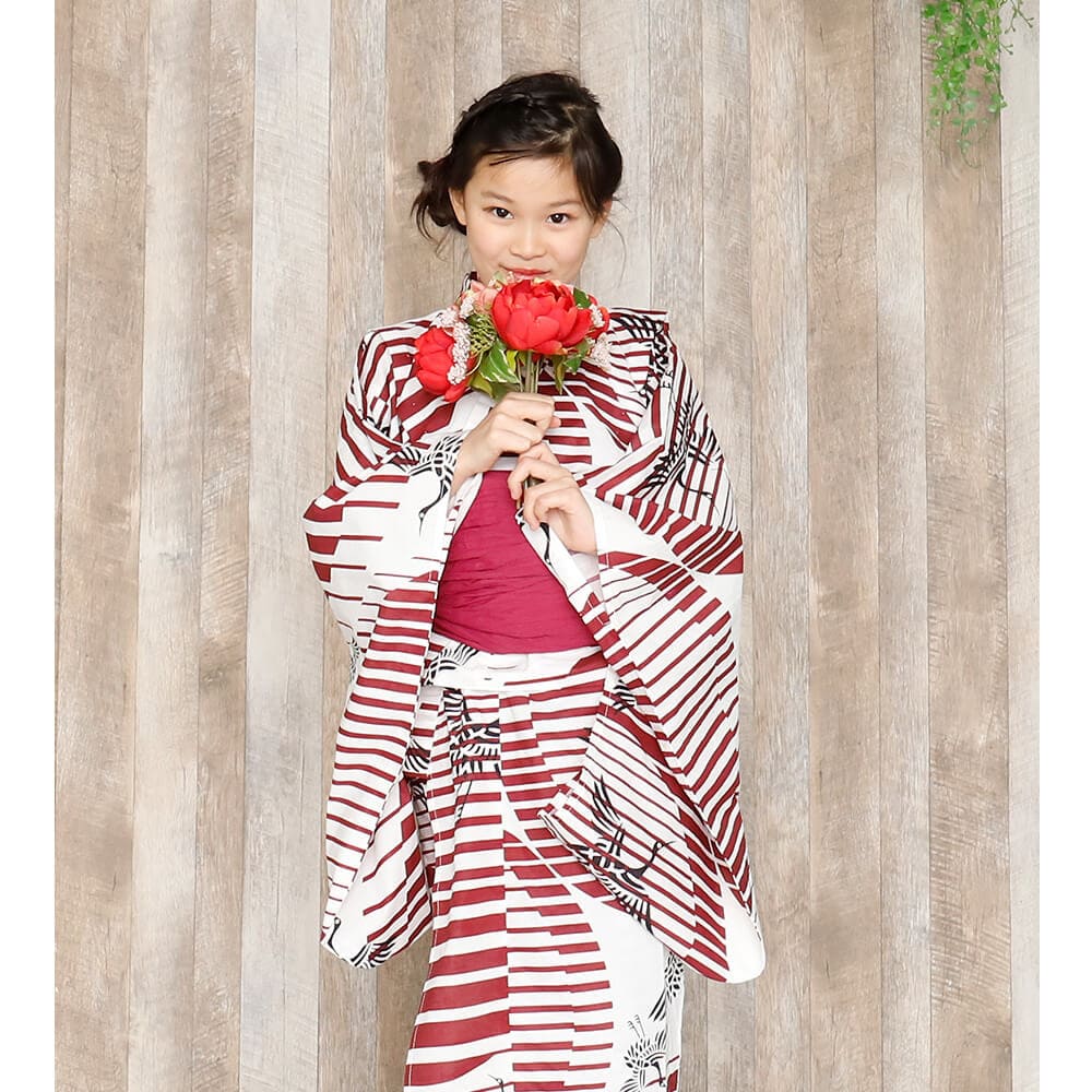 伝統的な鶴の柄が上品さを演出し、夏の思い出にふさわしい一着です。
