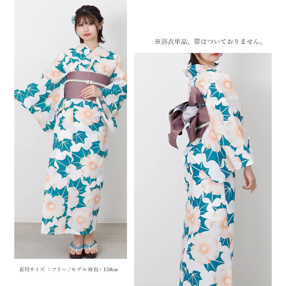 | サイズ(約) | 適応身長:155cm-168cm F:着丈163cm 裄丈67cm 袖丈:49cm ■モデル身長:158cm ※製造工程上、実寸より【約-3cm~+3cm】程度、誤差が生じる可能性がございます。 ※涼しさを保つため、生地は適度に薄く透け感があります。 ゆかた下スリップ等のインナーの着用をおすすめします。 ※浴衣の柄部分は大きな生地を裁断して縫製しております。 柄の出方、模様の配置等が画像と異なる場合がございます。 |
