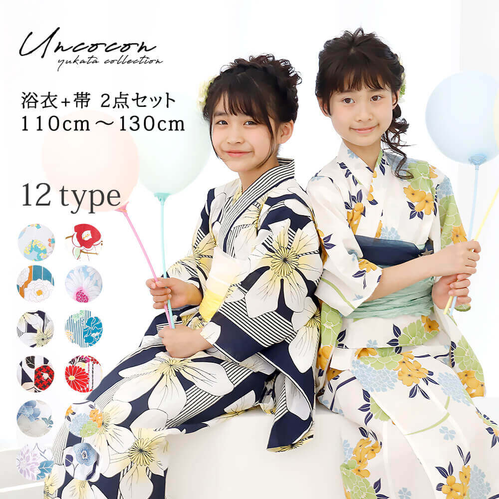夏祭りや花火大会など、楽しいイベントにぴったりな「子ども用浴衣+しわ兵児帯2点セット」です。