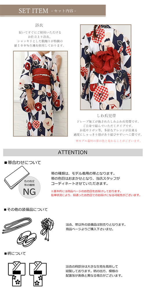 浴衣+しわ兵児帯の2点セットで届いてすぐに使える!