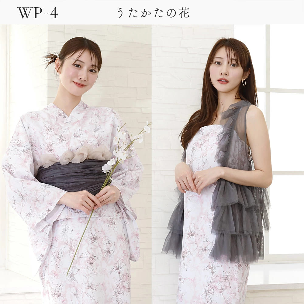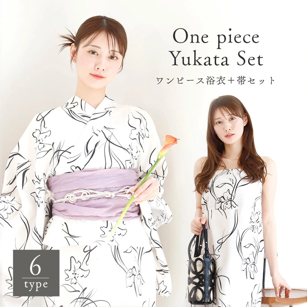 ワンピースの上から羽織を着て、帯を巻くだけで、すぐにお出かけOK♪誰でも簡単に浴衣美人になれる2点セットです。