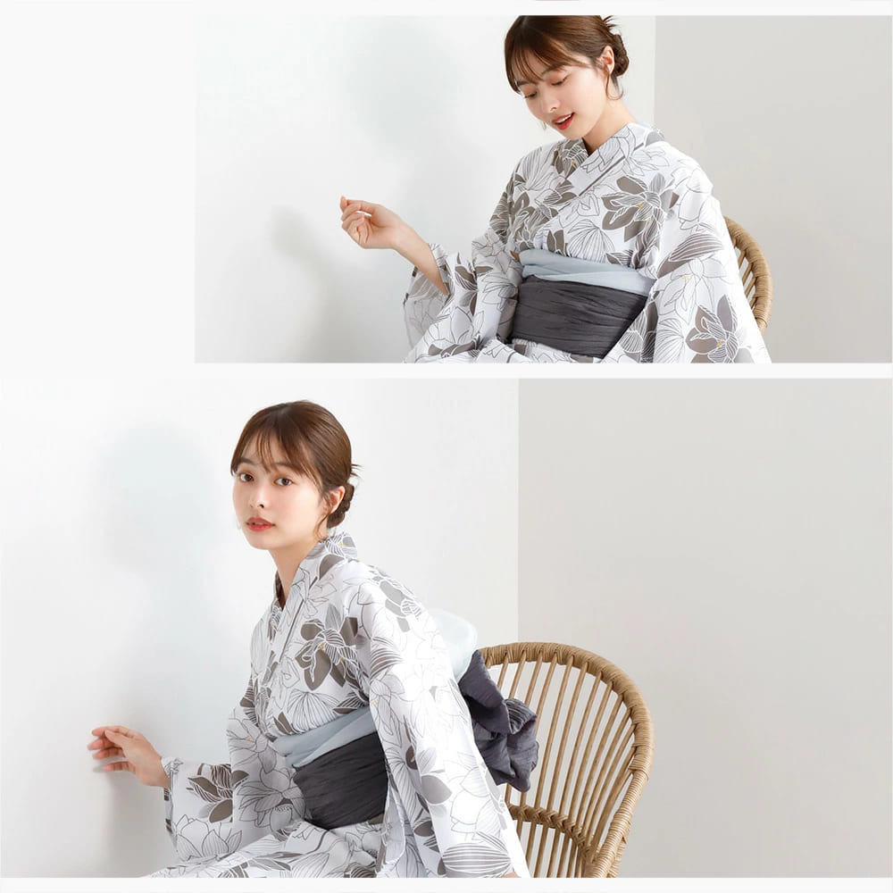 浴衣としてはもちろん、涼しげな素材感と大人可愛いデザインは、お祭り・花火大会・お食事会など幅広いシーンで映えます。