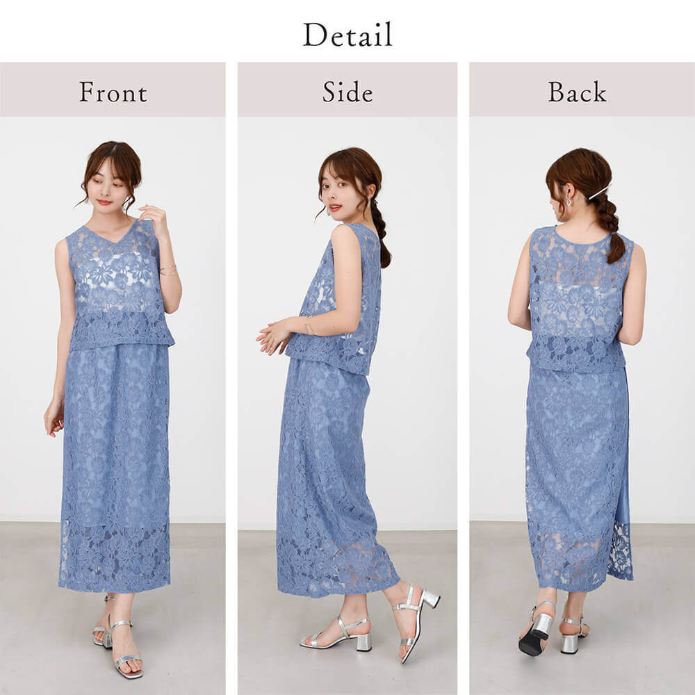 透け感のあるフラワーレースが女性らしさを引き立て、花火大会や夏祭り、カフェや旅行など、どんなシーンでも主役になれる一着です。
