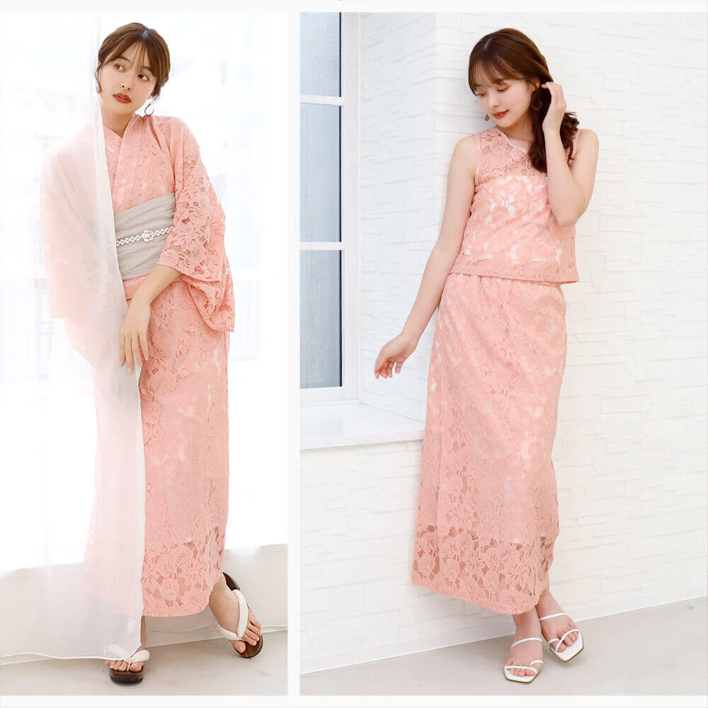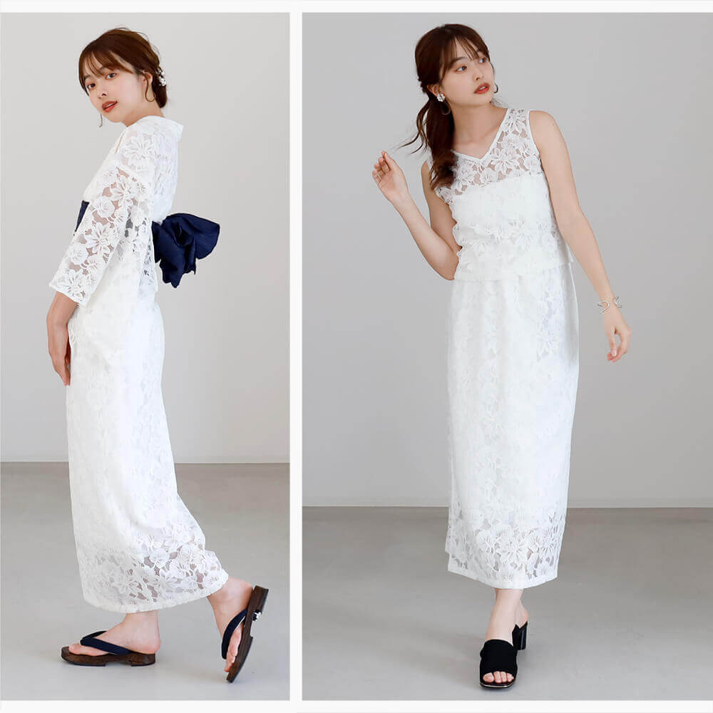 1着で4通りの着こなし!おしゃれも自由も叶える、新感覚レース浴衣セット。