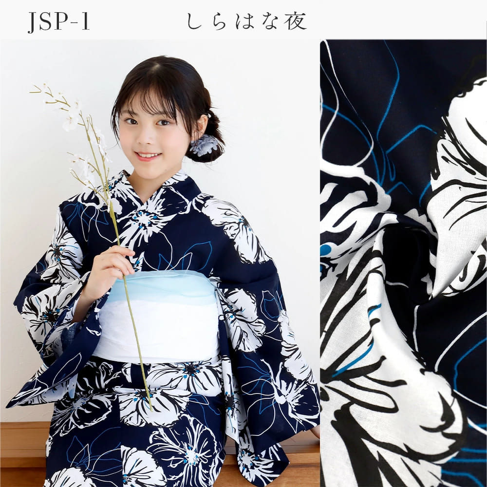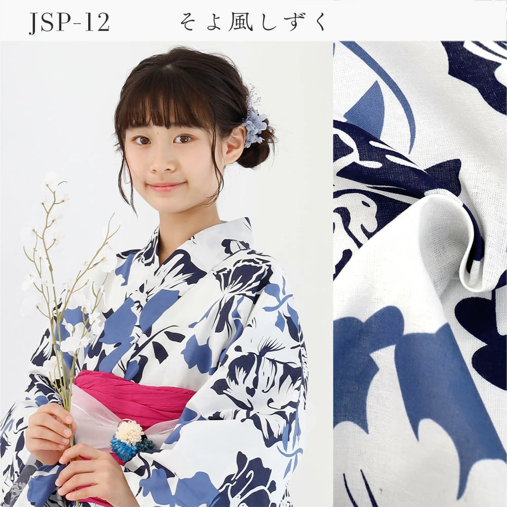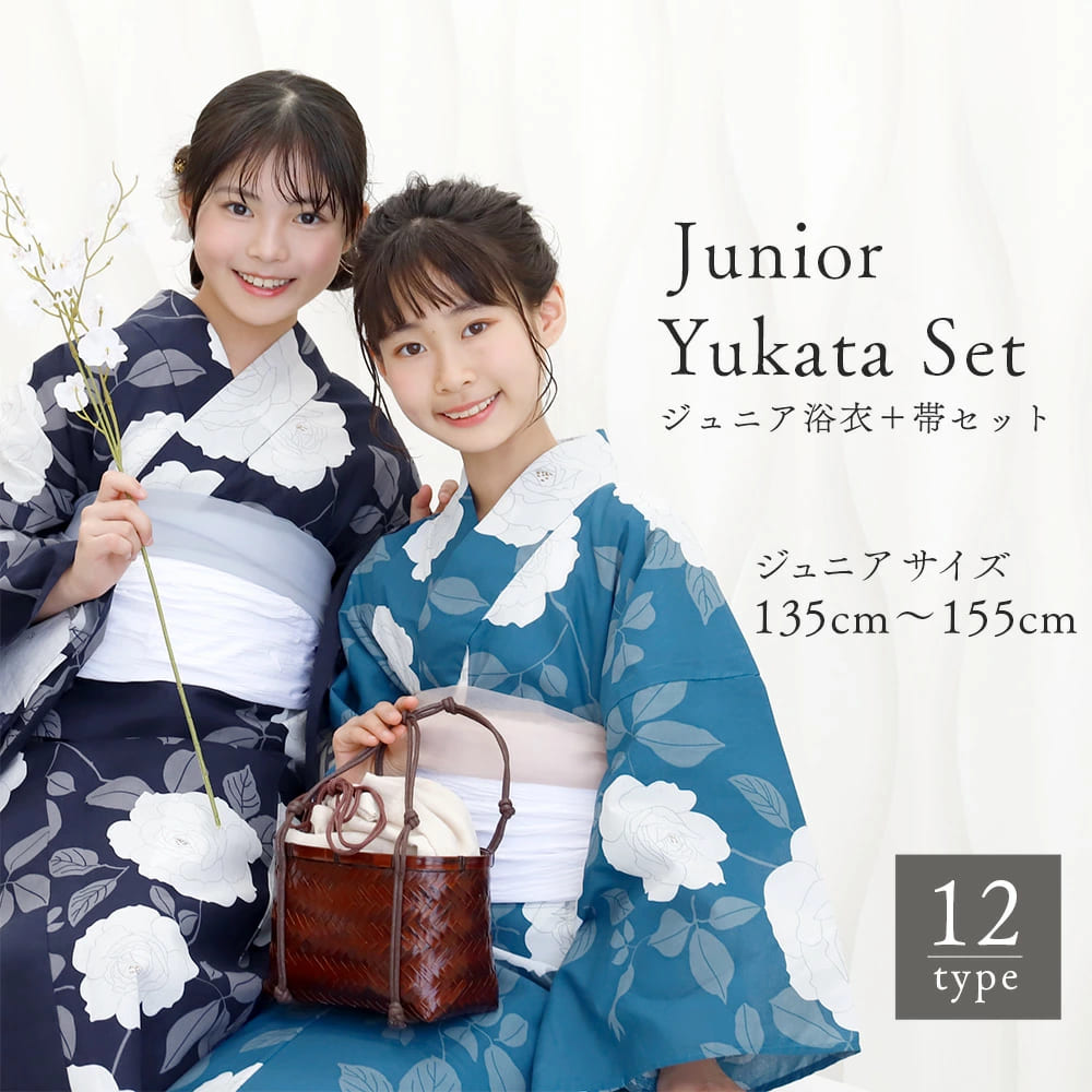 「ジュニア浴衣 2点セット」は、浴衣としわ兵児帯がセットになった簡単着付けのセパレートタイプ。