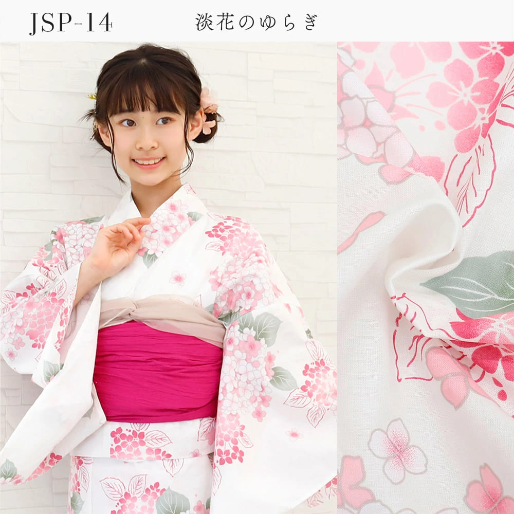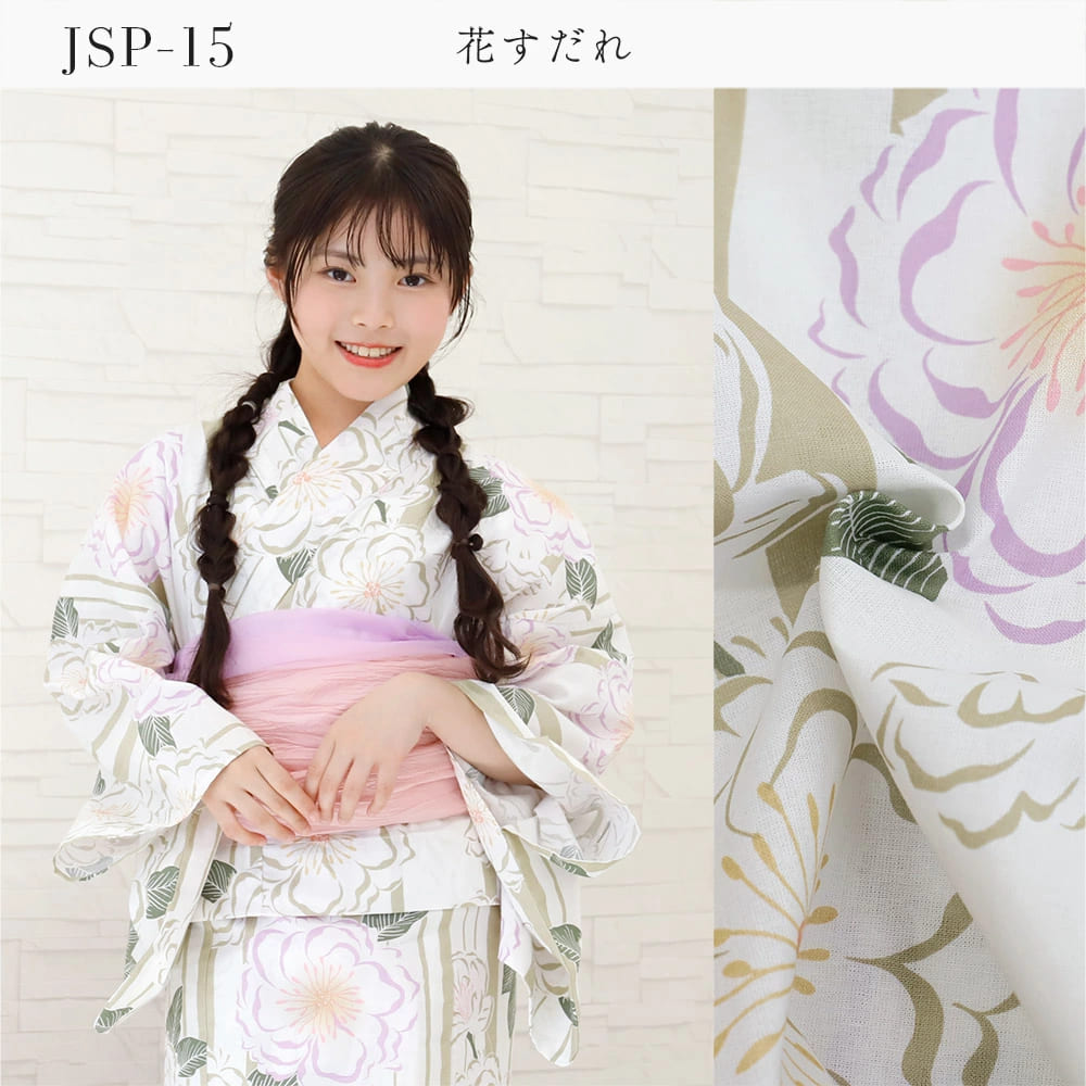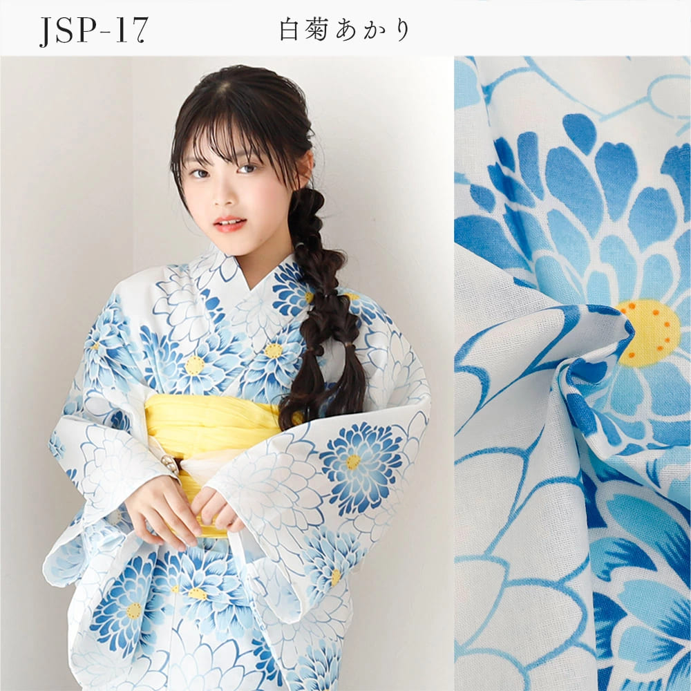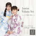 この「ジュニア浴衣セット」は、二部式浴衣としわ兵児帯の2点がそろった、着付け不要のやさしいデザイン。